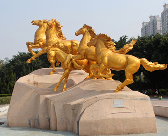 還有一種銅馬雕塑比較特殊,具有風水的作用,馬雖然不能化煞,卻有振奮人心的作用,由于馬的本性豪放不羈,所以擺設銅馬雕塑可以讓人有振作奮發(fā)的作用。中國人對馬的感情也是非常深厚的,賦予馬很多人類的情感,深受國人的喜歡,以致在中國歷代文獻、典故、藝術(shù)品中,以馬為題材的裝飾品越來越多。