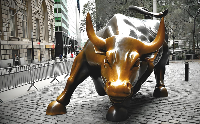 紐約曼哈頓的華爾街銅牛,無疑是全球最具影響力的銅牛雕塑之一。這尊由意大利裔藝術(shù)家阿爾圖羅?迪?莫迪卡創(chuàng)作于 1989 年的作品,重達(dá) 3.2 噸,以肌肉虬結(jié)的軀體、昂首前沖的姿態(tài),成為 “牛市” 的象征。其誕生背景頗具傳奇色彩:在 1987 年美股崩盤后,藝術(shù)家自掏腰包 36 萬美元鑄造銅牛,連夜安放在紐約證券交易所前的圣誕樹下,寓意 “經(jīng)濟(jì)復(fù)蘇”。盡管初期因 “非法放置” 引發(fā)爭議,但民眾對它的熱愛最終讓其落戶于百老匯大街,成為紐約的城市名片。2009 年,中國國旗首次在銅牛旁升起,見證了中美關(guān)系的深化;而 2019 年的搬遷計劃,則引發(fā)了全球?qū)ζ湮幕瘍r值的再思考。這尊銅牛不僅是金融市場的晴雨表,更傳遞著逆境中昂揚向上的信念。