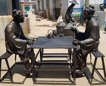 步行街民俗人物雕塑的制作,不僅要注意人物背后的背景和其所傳達(dá)的內(nèi)涵,更是要注意人物形象的鑄造。我們以銅為原材料創(chuàng)造出具有一定空間的可視、可觸的藝術(shù)形象,無論是放在城市街頭還是凡在步行街,都會(huì)呈現(xiàn)出不一樣的文化裝飾效果。