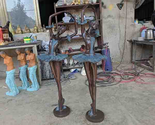 2、保證全流程純手工制作完成,制作師傅手藝純熟,成品銅舞蹈人物雕塑整體造型優(yōu)美,細(xì)節(jié)雕刻細(xì)膩?zhàn)匀?,拋光打磨處理到位,瑕疵極少。